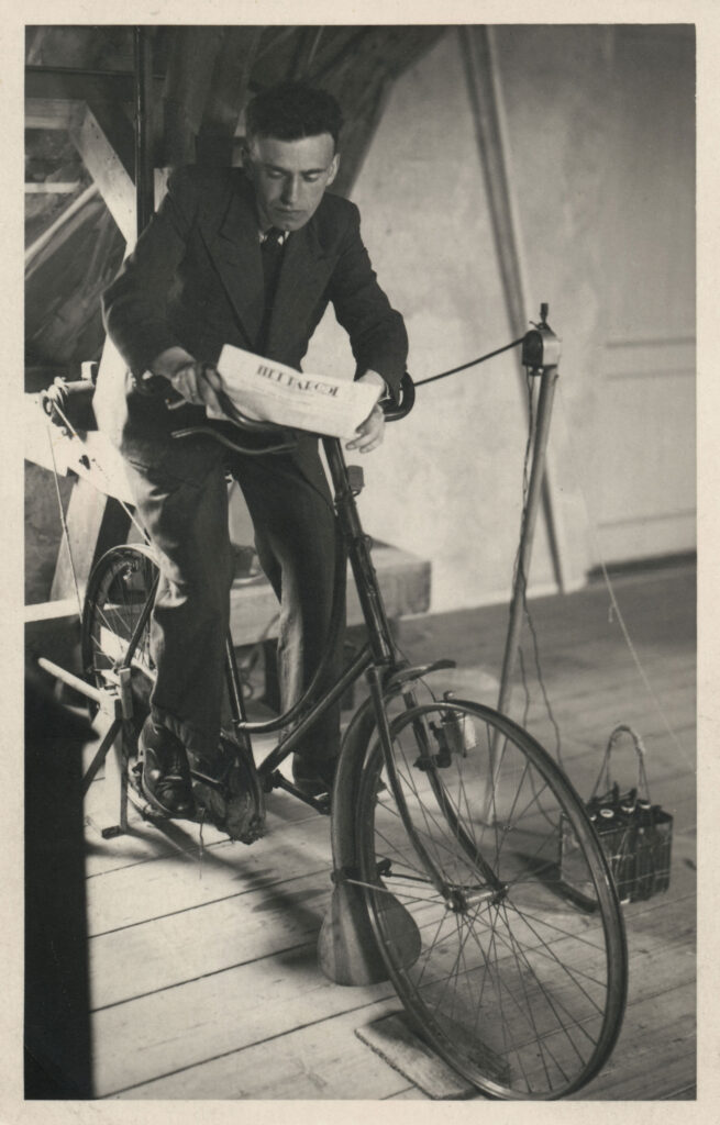 Op de zolder van het Kadaster in Haarlem zijn de joodse Juda Tas en zijn echtgenote Esther Tas-Callo ondergedoken. Op een omgebouwde fiets laadt hij een accu op voor de radio van het verzet, dat op dit adres lokale ondergrondse nieuwsbladen vervaardigt. Tijdens het trappen leest Tas het illegale blad Het Parool.