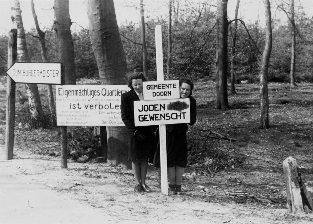 De joodse Nina van Leer (rechts) drijft de spot met een anti-Joodse bepaling van de gemeente Doorn. Haar vader, fabrikant en kunstverzamelaar Willem Alexander van Leer, sterft in september 1941 een natuurlijke dood. Zijn vrouw Bertha en hun drie dochters, Bertha, Meta en Nina worden in daaropvolgende jaren gedeporteerd. Nina zal bij het Oost-Duitse Torgau, in de buurt van Leipzig door Sovjetsoldaten worden bevrijd en als enige terugkeren naar Amsterdam.